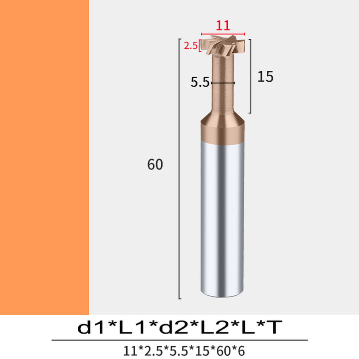 The 11mm carbide T-slot cutter is ideal for precise slotting, keyseat, and profile machining in: