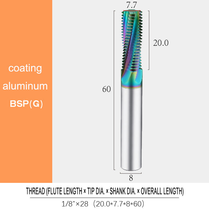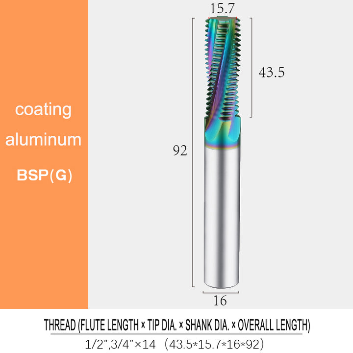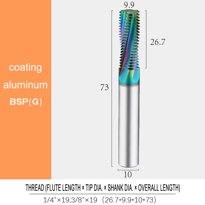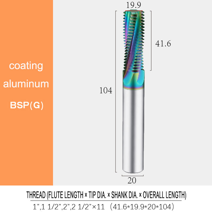 - Ideal for machining BSP and BSP(G) internal threads in fittings, hydraulic and pneumatic components.