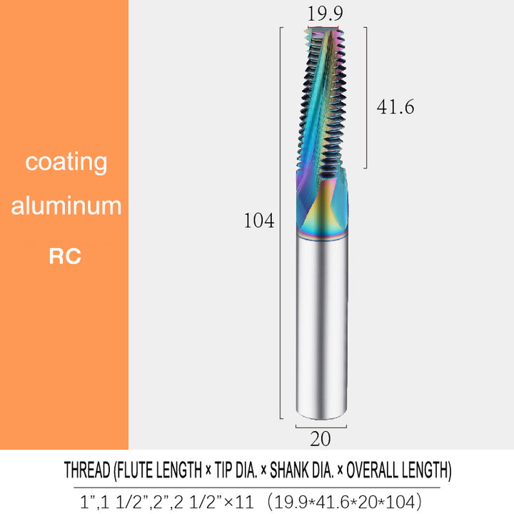 Thread Size | Pitch (TPI) | D (mm) | D2 (mm) | Overall Length (L) | Thread Length (Le) | Flute Number | Tooth Count | Bottom Hole Ø (mm) |