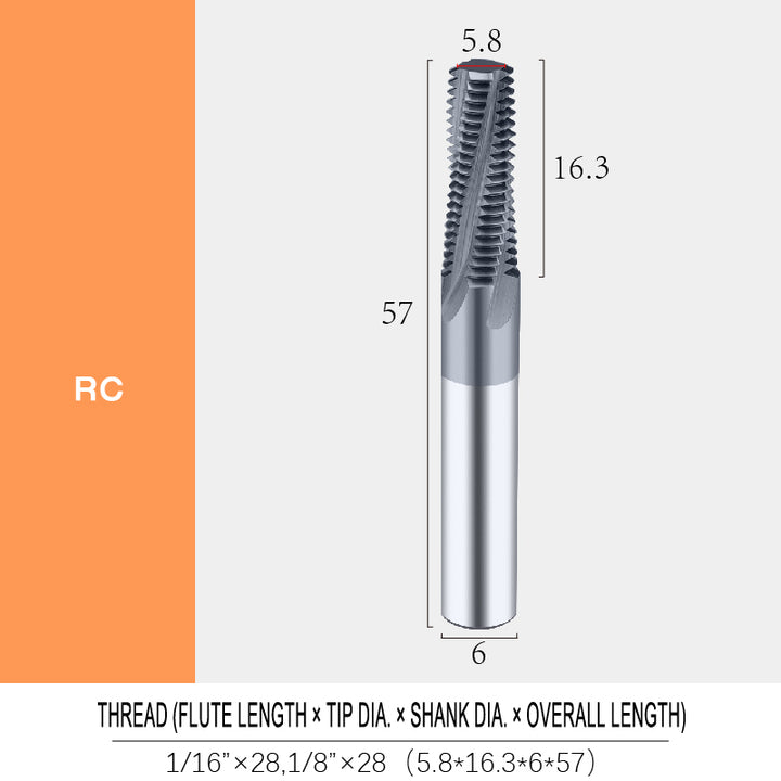 1/16" × 28 | 28 | 6.0 | 5.8 | 57 | 16.3 | 3 | 18 | 6.7 |
